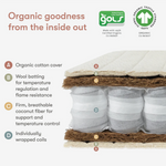 • NONTOXIC MATERIALS: A soft, organic cotton mattress cover and wool batting is gentle on baby's sensitive skin while firm and breathable coconut husk fibers and individually wrapped coil springs provide ample support for your little one from day one and beyond.