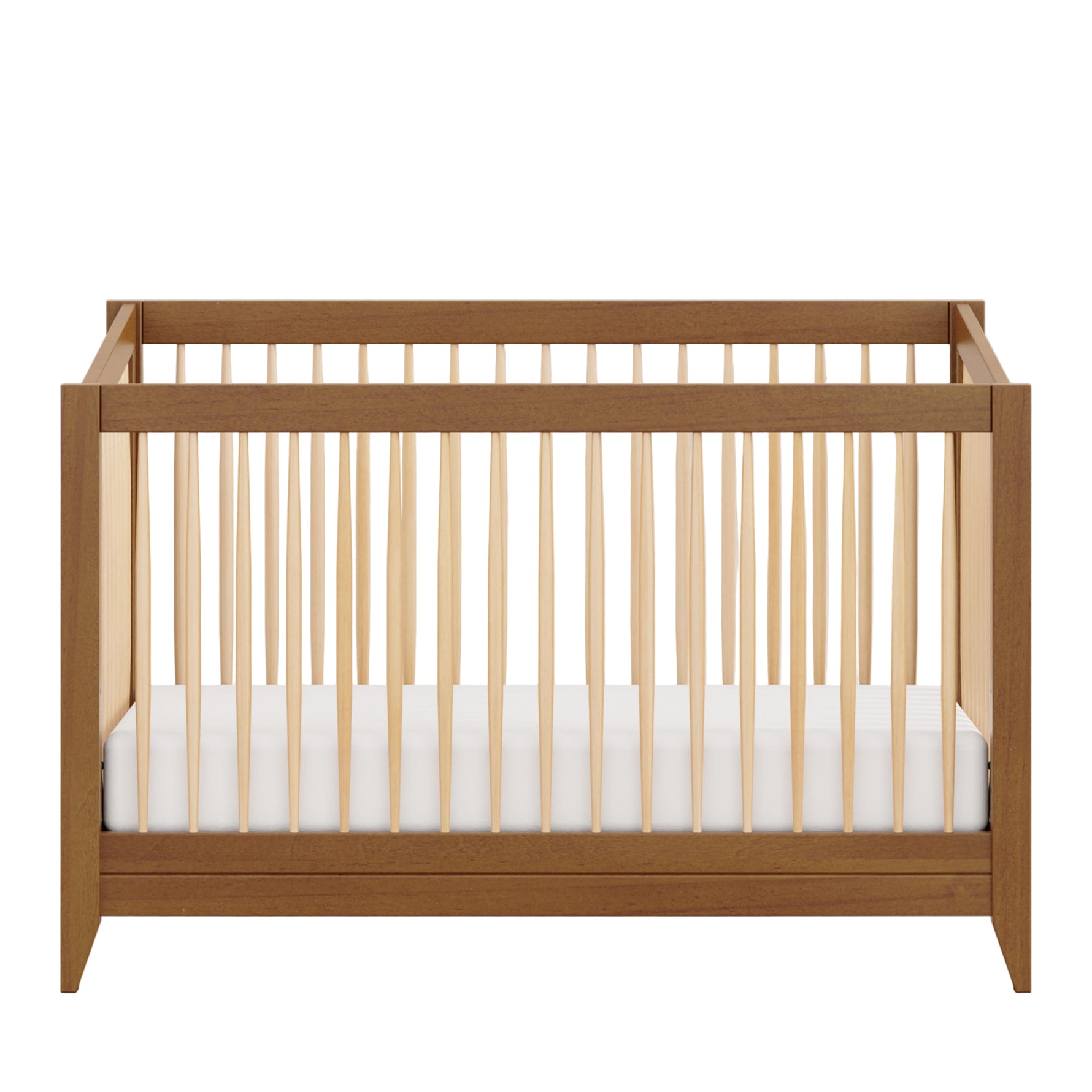 Add new dimension and geometric playfulness to your modern nursery with the Sprout 4-in-1 Convertible Crib. Tapered spindles and triangular feet bring nostalgic charm to this crib’s modern shape. And with a subtle raised back, Sprout can grow with your babe with a smart full-size bed conversion. Made with sustainable pine wood and GREENGUARD Gold certified to improve indoor air quality.