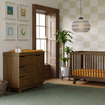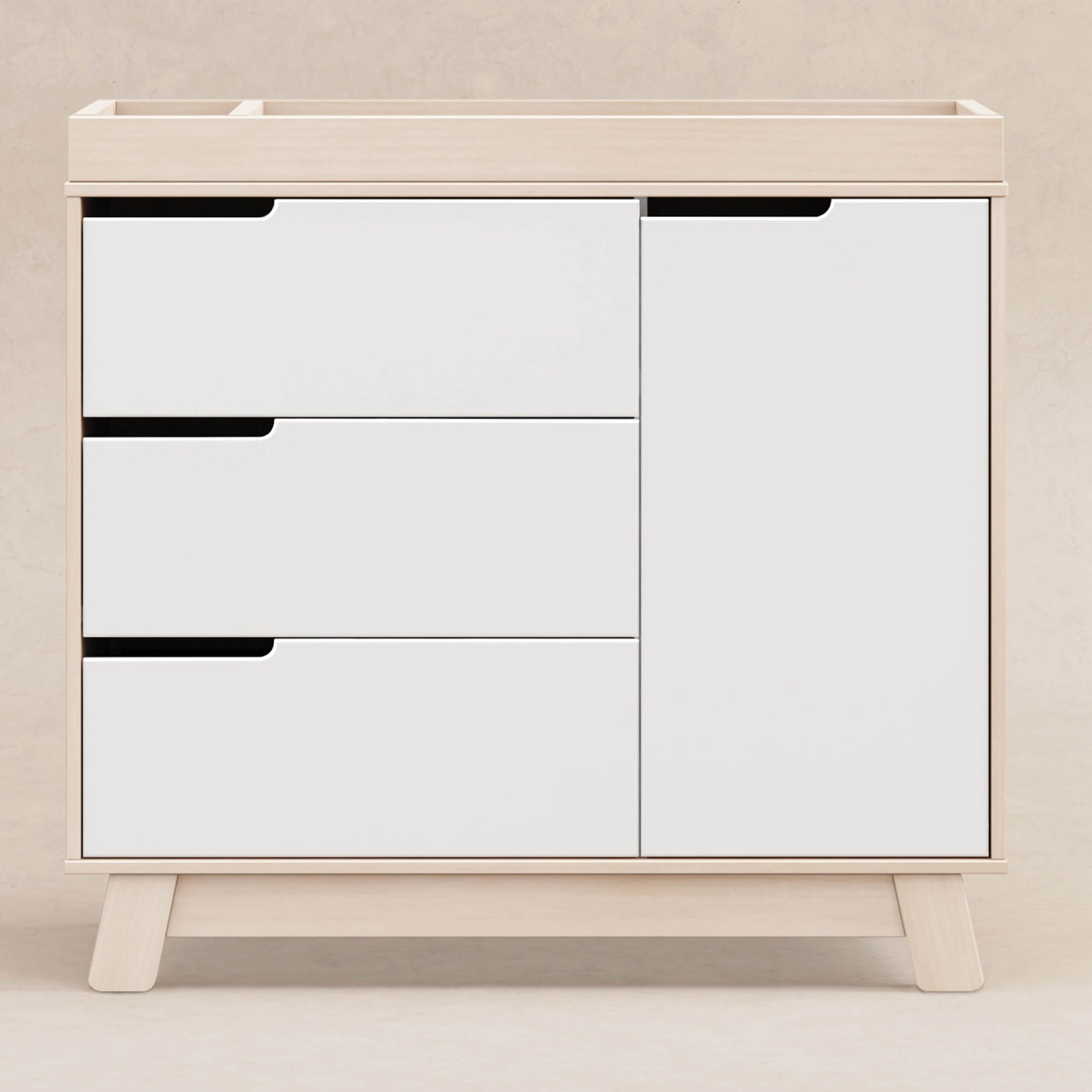 The Hudson 3-drawer Changer Dresser is a modern space-saving convenience! Combining an included changing table, 3-drawer dresser, and storage cabinet all in one versatile package. Truly built for baby, the storage cabinet includes an adjustable shelf which is perfect for keeping diapers and wipes handy. Additional details include smooth-glide drawers, hidden hardware, and an included anti-tip kit. Complement the best-selling Hudson 3-in-1 Convertible Crib for an essential modern nursery.