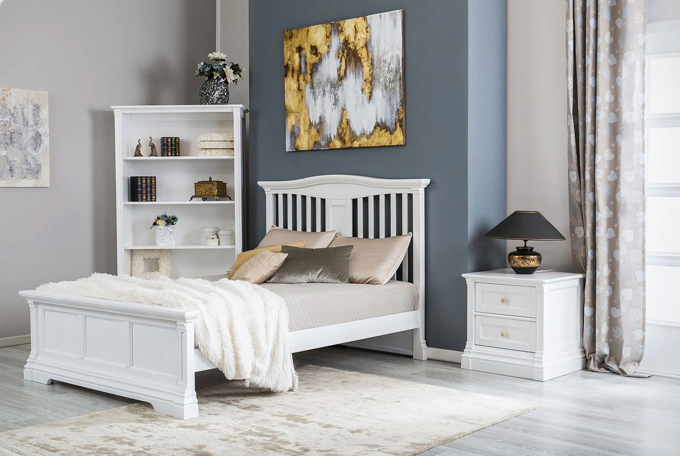 Imperio Collection classic lines are carved into both the headboard components as well as the low profile footboard guaranteed to make a bold design statement.
