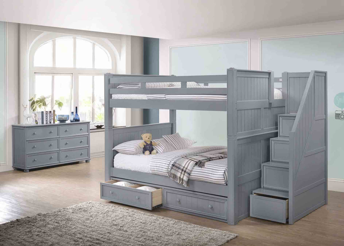 Experience the ultimate in versatility with our full over full bunk bed, designed to maximize your space without compromising on style. Choose between convenient step drawers or a sturdy ladder for easy access. Enhance your storage capabilities with underbed drawers or add a twin or full-size trundle for extra sleeping arrangements. This modern, premium design combines timeless elegance with classic functionality, making it a perfect addition to any room.