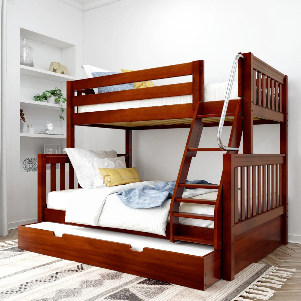 We combined our original Maxtrix Kid’s twin over full bunk bed with an convenient trundle bed. This best seller combines a full bed on the bottom with a twin on the top.