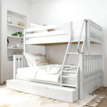 Twin over Full Medium Bunk Bed with Angled Ladder and Trundle Bed or Underbed Storage Drawer