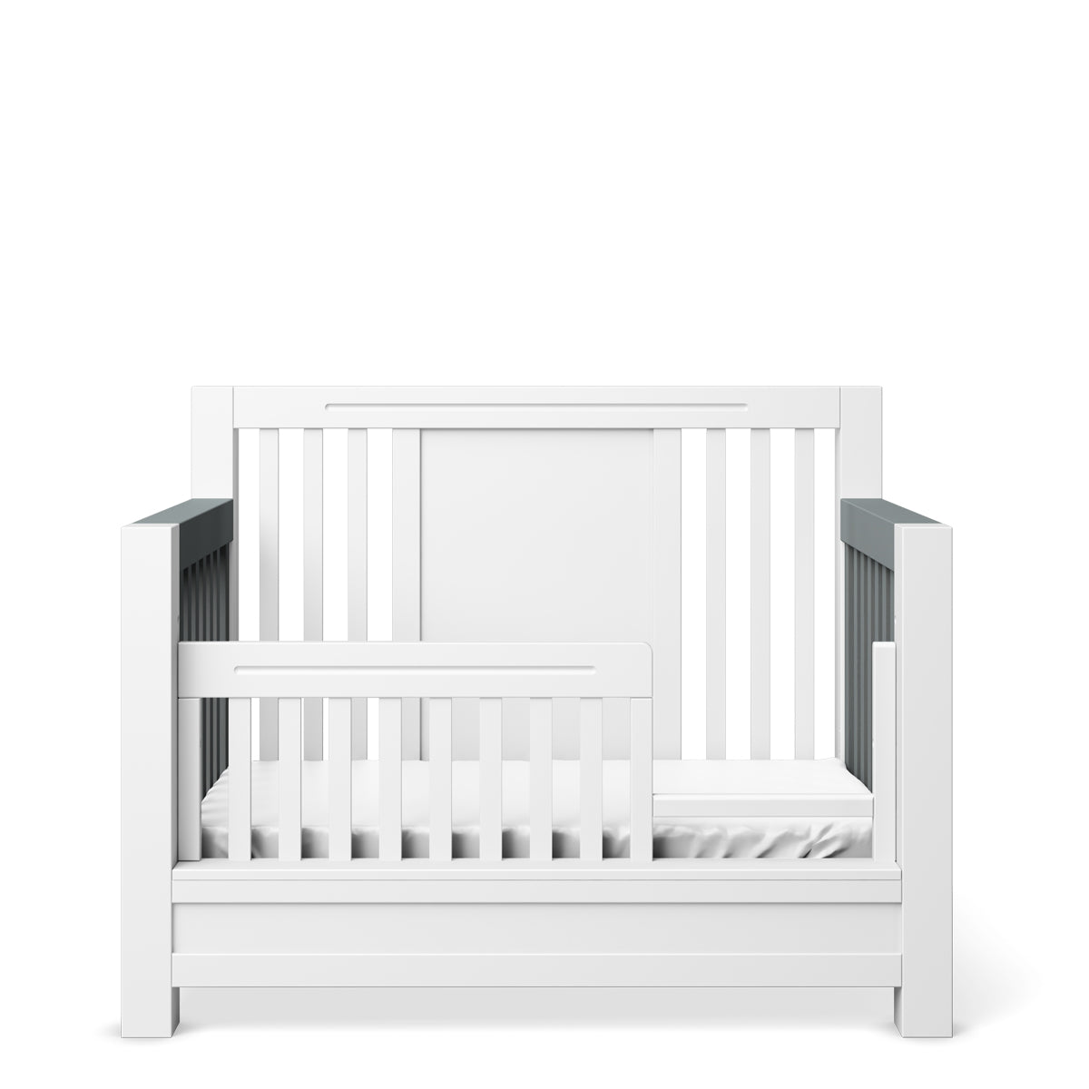 Toddler rails are designed to match the overall crib design and maximize functionality through the conversion stages. Adding some extra protection against toddler rolling out of the crib, it makes safety look stylish. This toddler guard rail is compatible with the Ventianni Convertible Crib (Model# 4501).
