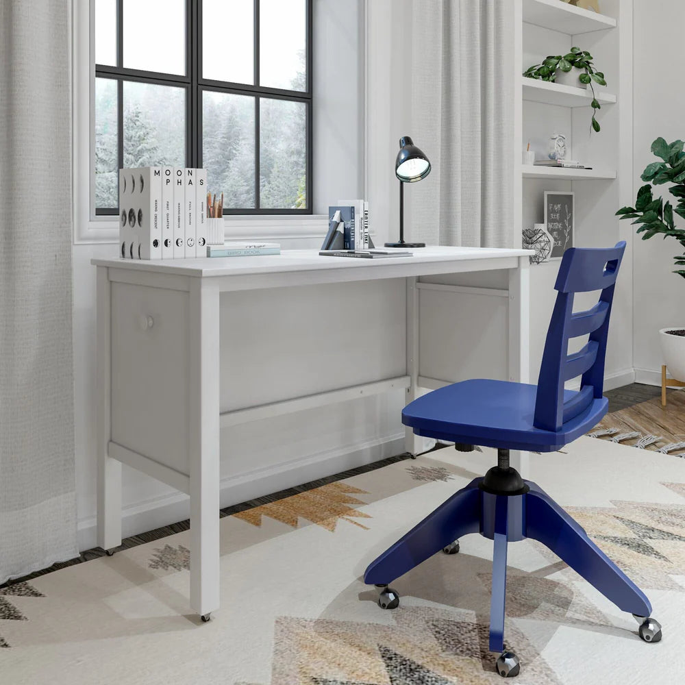 Bring style and versatility to your schoolwork or craft space with our Study Desk Top with Legs. A solid hardwood frame pairs with a strong engineered wood desk surface to create the perfect durable setup for long study sessions. Beautiful hardwood veneers create a stylish, clean look. This space-saving design rolls on caster wheels for easy placement under your Maxtrix loft or anywhere in your room.