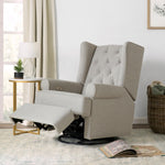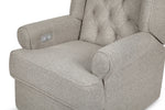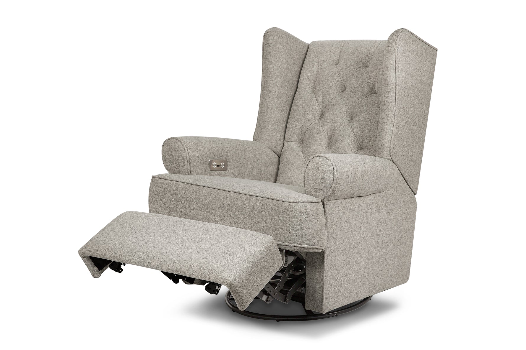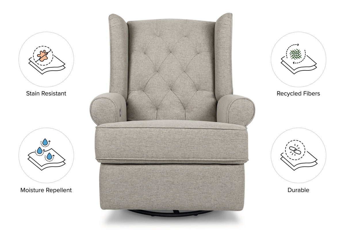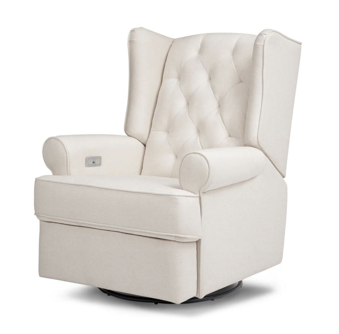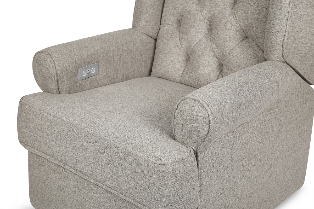 The Harbour Power Recliner has been thoughtfully designed to blend comfort, convenience and style in your nursery and home. Sink into this sizeable chair that glides, swivels, and reclines to a peaceful resting position. With its clean lines, tufted design and wingback style, Harbour can easily transition from nursery to big kid room, playroom or living room. Featuring a premium stain-resistant and moisture-repellent fabric, this durable recliner will look as good as new for years to come.