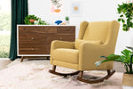 • MODERN WINGBACK STYLE: A modern twist on a mid-century wingback rocking chair with softly rounded edges and curved walnut-stained legs