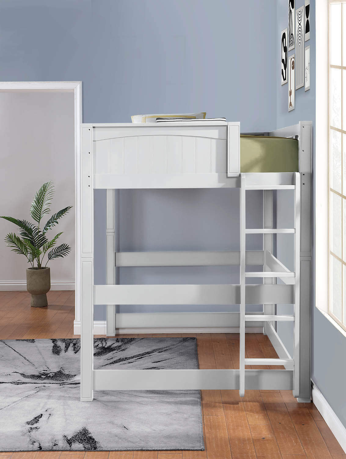 Elevate your bedroom with this queen loft bed, designed to combine classic style with practical functionality. Featuring timeless beadboard detailing and a straight ladder for easy access, it offers a clean, modern look with sturdy construction. The open underbed area provides versatile space for storage, a desk, or a cozy seating area, making it a smart choice for any bedroom. Durable and thoughtfully designed, this loft bed delivers both style and flexibility that families will enjoy for years to come.