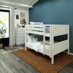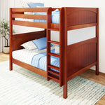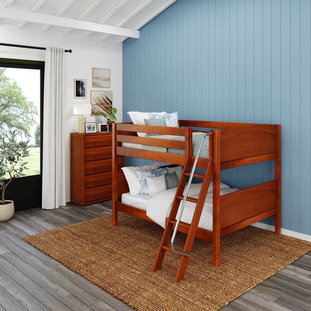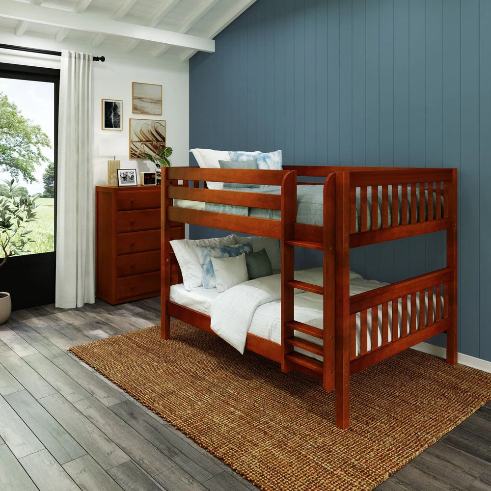 Low bun.k bed measures 80” L x 57.5” W x 61.5” H with 32.25” between each bunk.