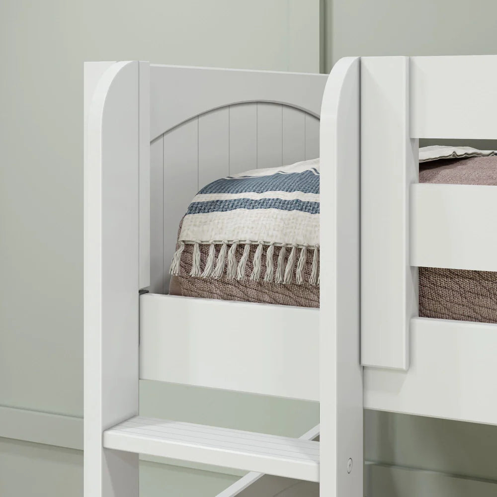 • Configurable for Your Space: Choose either straight ladders that sit flush against the L-shaped bunk bed, angled ladders with handrails, or one of each. With the flexibility to position the ladder on the front or end, this twin XL “L” shaped bunk bed is versatile enough to fit different room types.  The angled ladder extends 32.25” for medium bunk beds and 34.5” for high bunk beds, and straight ladder measures 4” from the bed.