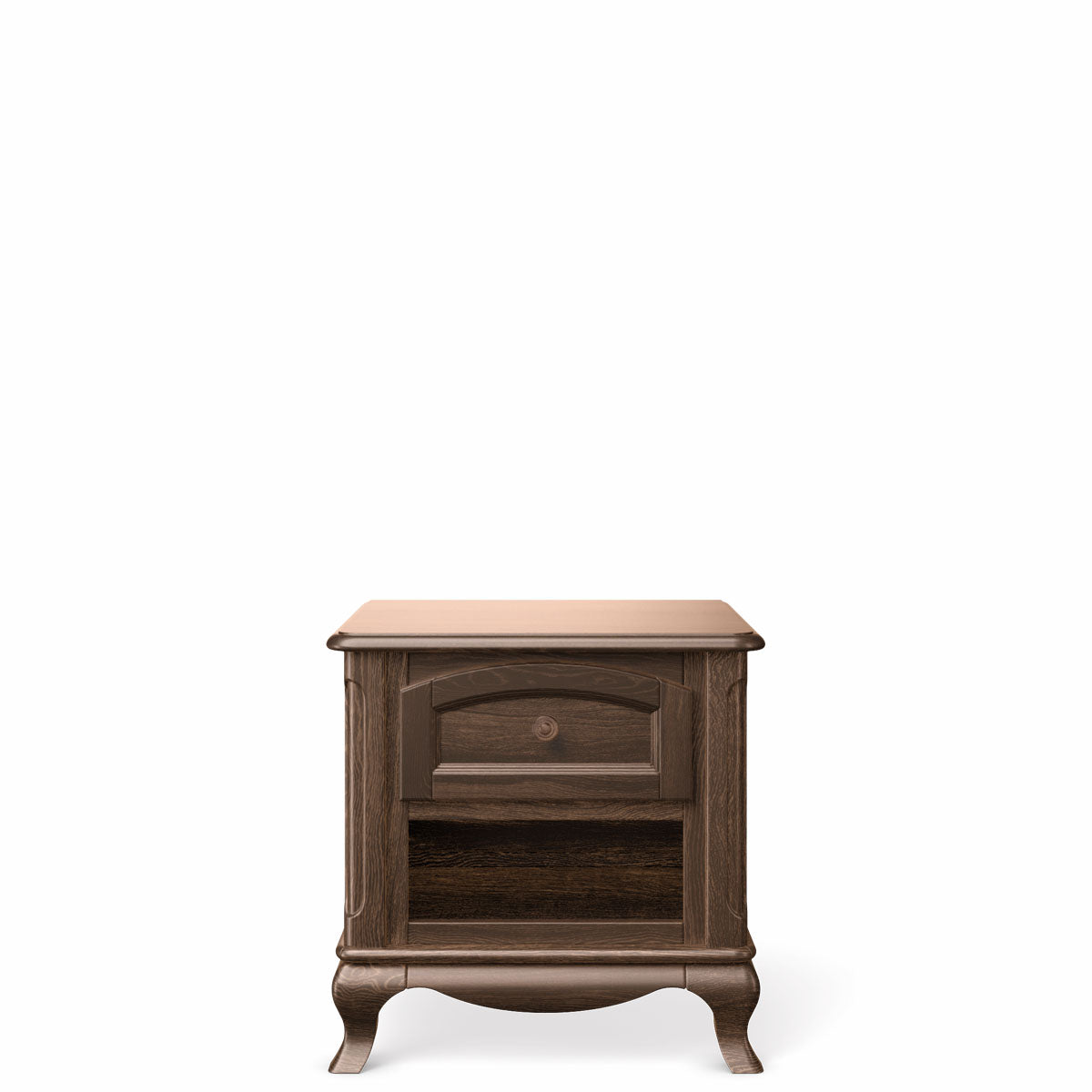 Cleopatra Nightstand is a nursery and bedroom essential. Nightstands provide a multitude of functions, whether a beautiful decorative piece next to your rocking glider or next to your bed to support a lamp, alarm clock or those paper made objects called “books”. This unit is standardly equipped with round wooden handles (double swirl, Standard Knob W2) finished to match the furniture unit. There are over 100 ways to customize this Cleopatra nightstand and make it your own.