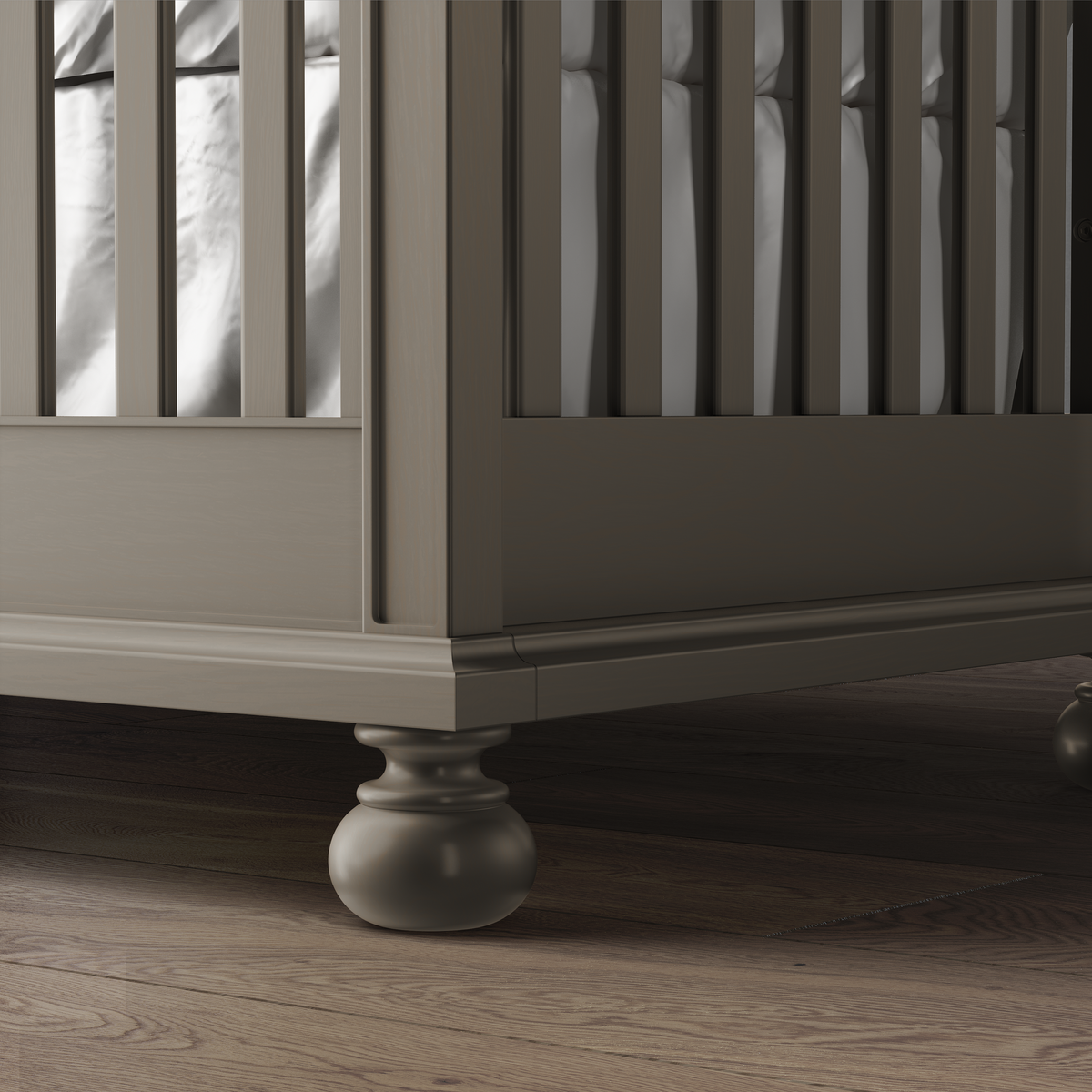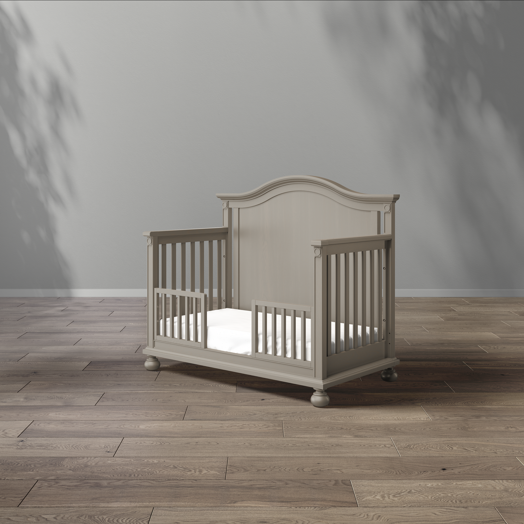Dakota Convertible Crib offers comfort, style and long term value. Growing along with your child, Dakota offers a safe and stylish sleeping place from newborn to college. Classic, not traditional, and superbly dressed with architectural details, the timeless design is a statement of craftsmanship. There are 3 mattress height settings for maximum convenience and the crib can be converted to a day bed without any additional purchases.