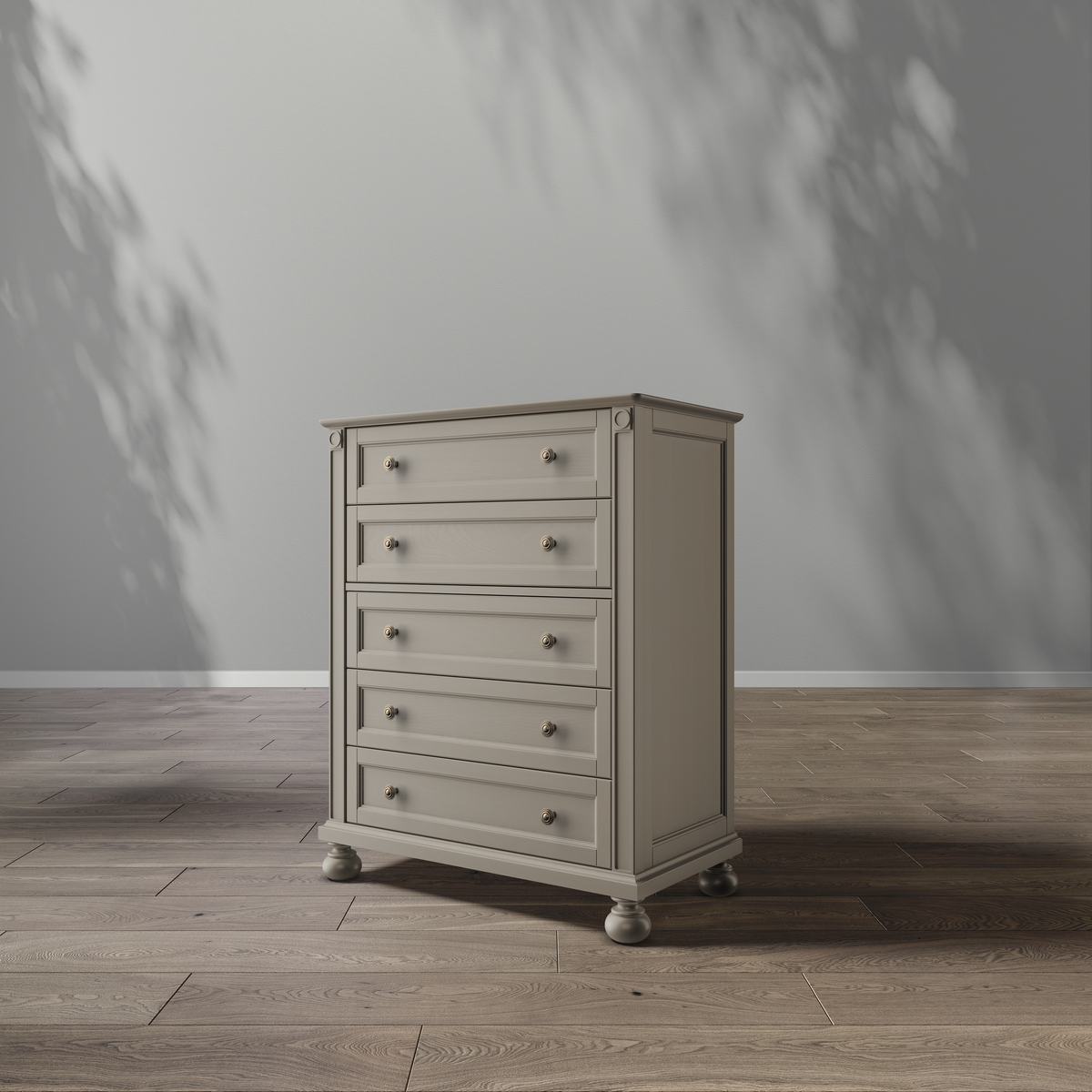 Dakota Chest offers maximum storage volume and takes a minimum amount of floor space. There are five large drawers which can store your child’s entire wardrobe.