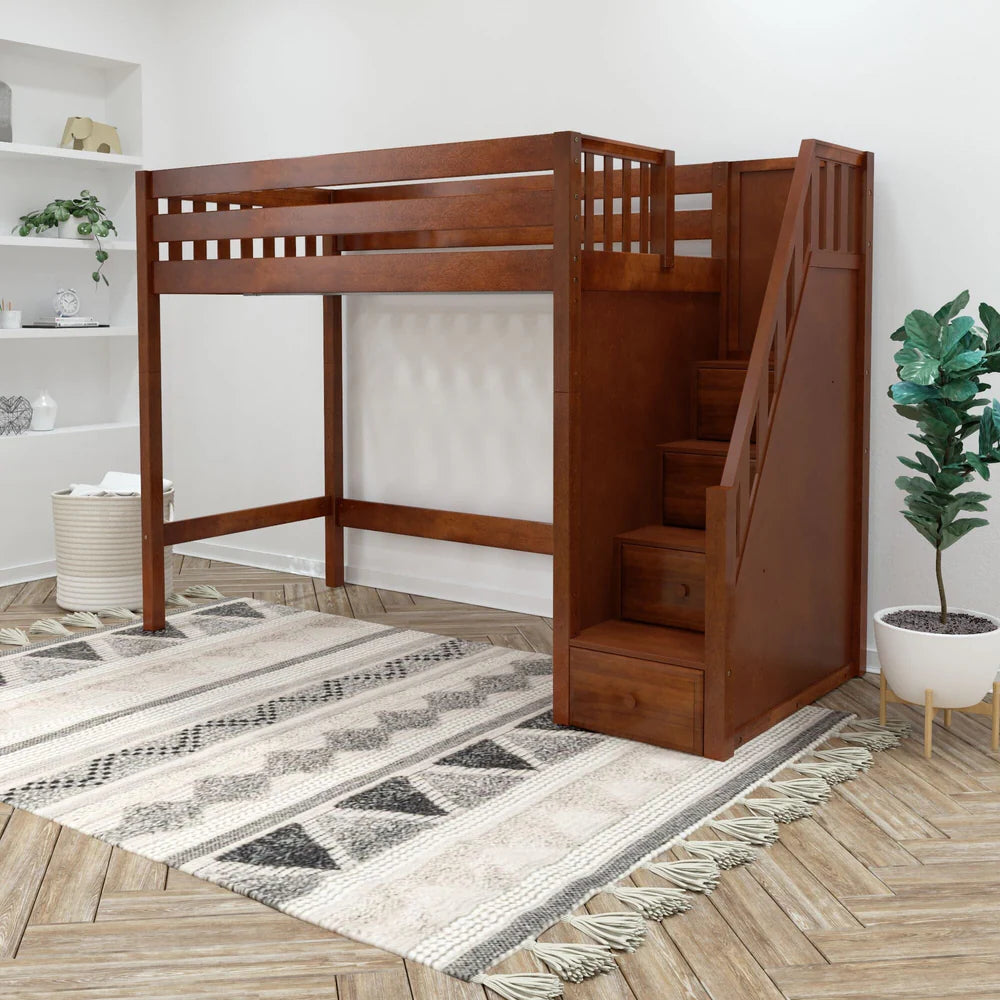 Our unique High Loft Bed with Stairs design is the solution to your space and storage needs. A higher loft height offers more floor space for storage, lounging, playing, or homework. Keep clothes, extra bedding, and treasures organized and hidden in our built-in stairs' storage drawers. With a weight capacity ranging from 800 pounds for twin and full beds to 2,000 pounds for twin XL and queen beds (as supported by internal testing), this high loft bed allows anyone to sleep up high comfortably and securely. Thanks to our patented Rock Lock™ technology that minimizes wobbling and industry-leading guardrail height, feel protected and peaceful for every night’s sleep.