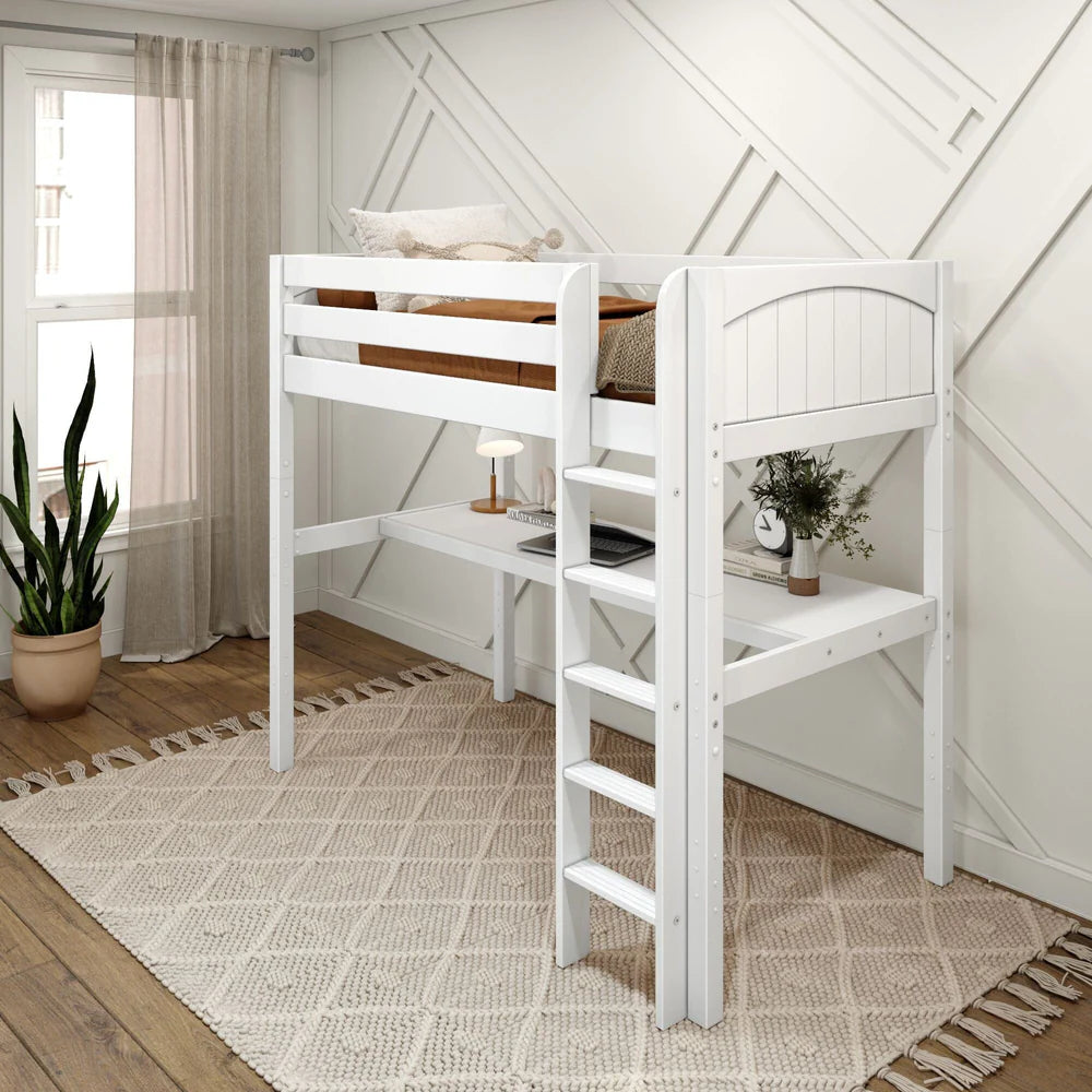 This high loft bed is the space-saving and study time solution you are looking for. Our High Loft Bed with Long Desk has a built-in long desk that serves as a designated homework station under the lofted bed. High loft beds free up floor space for storage, lounging, playing, or homework. With a weight capacity ranging from 800 pounds for twin and full beds to 2,000 pounds for twin XL, and queen beds (as supported by internal testing), this high loft bed allows anyone to sleep up high comfortably and securely. Thanks to our patented Rock Lock™ technology that minimizes wobbling and industry-leading guardrail height, feel protected and peaceful for every night’s sleep.