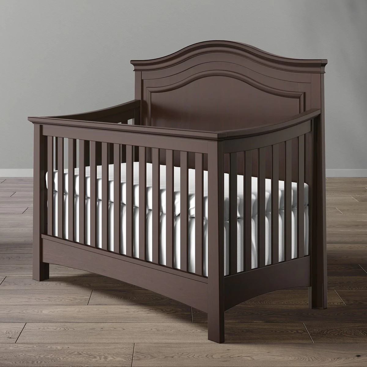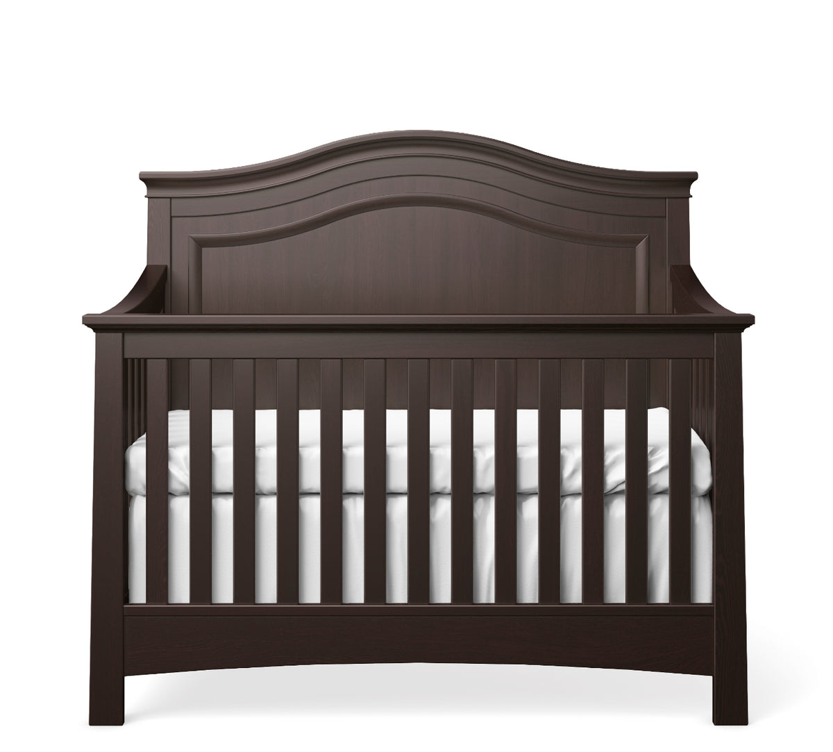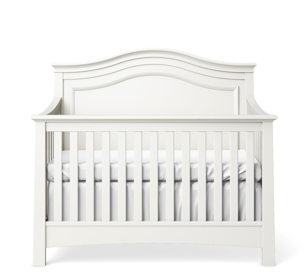 Serena is the instant classic, the design that grows on you. Arched headboard with subtle curves and perfect proportions, this 4 in 1 Convertible Crib transforms into a full size bed. Solid wood construction, finished with organic, non-toxic paints and stains.