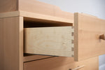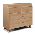 The modern Luce Double Dresser is made In Italy with a classic style that pairs perfectly with our Luce Crib. The Luce Double Dresser adds a pop of mid-century style to any room on its own. Safe, stable, and strong, with sturdy angled legs and solid wood handles, forged steel support, and a baby-safe painted finish. Optional black metal handles and knobs are included as well. The included removable changing topper fits snugly on top for the diaper years, and extra deep German soft-close drawers provide ample storage as your baby grows. Built to add beauty to your home for generations with seamless functionality and timeless style.