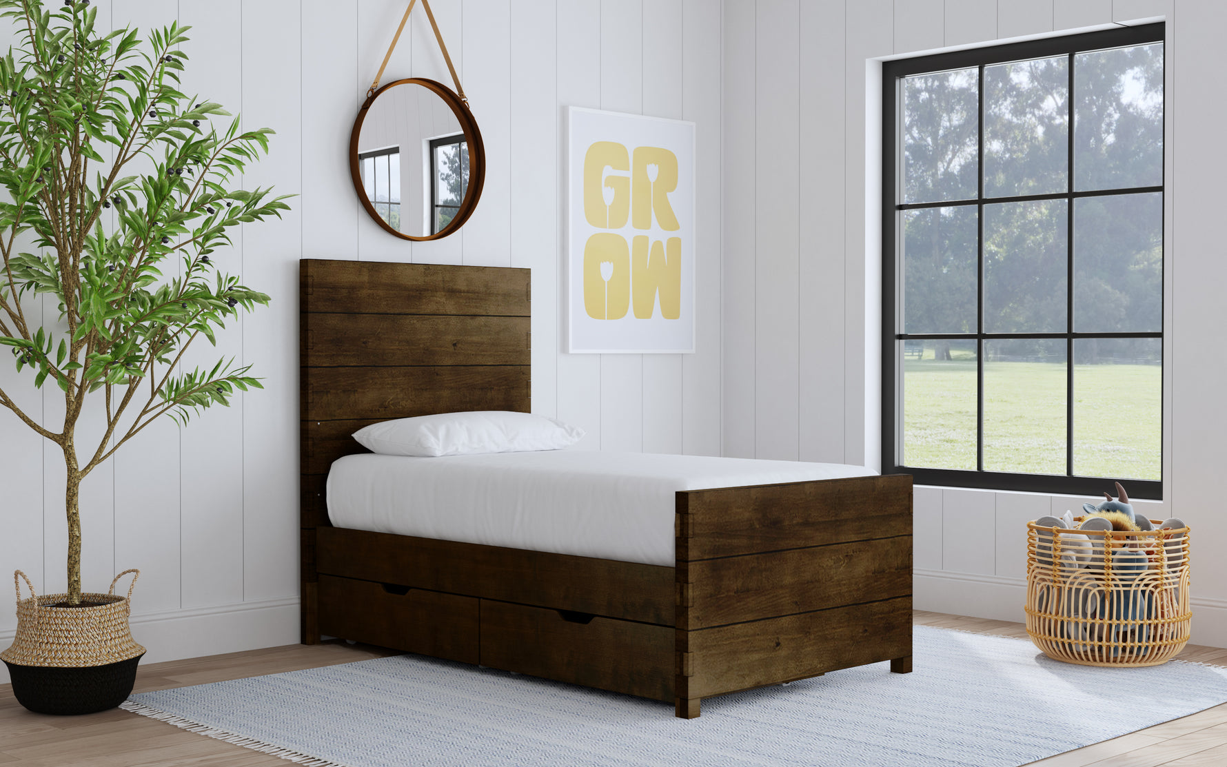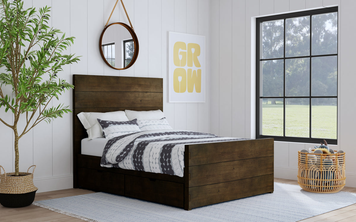 The Dovetail collection offers a beautiful contempory look without being too grown up for your little one. Unique dovetail details and bronze metal handle pulls are combined with a chic graphite finish to create an unforgettable bedroom set.