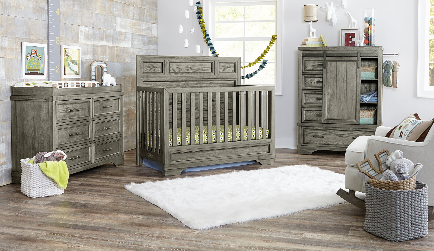 The Foundry Nursery Collection features a beautiful transitional style offered in two stunning finishes with two classic headboard options. Five unique case pieces with authentic hardware and function and character for a cozy childhood bedroom.