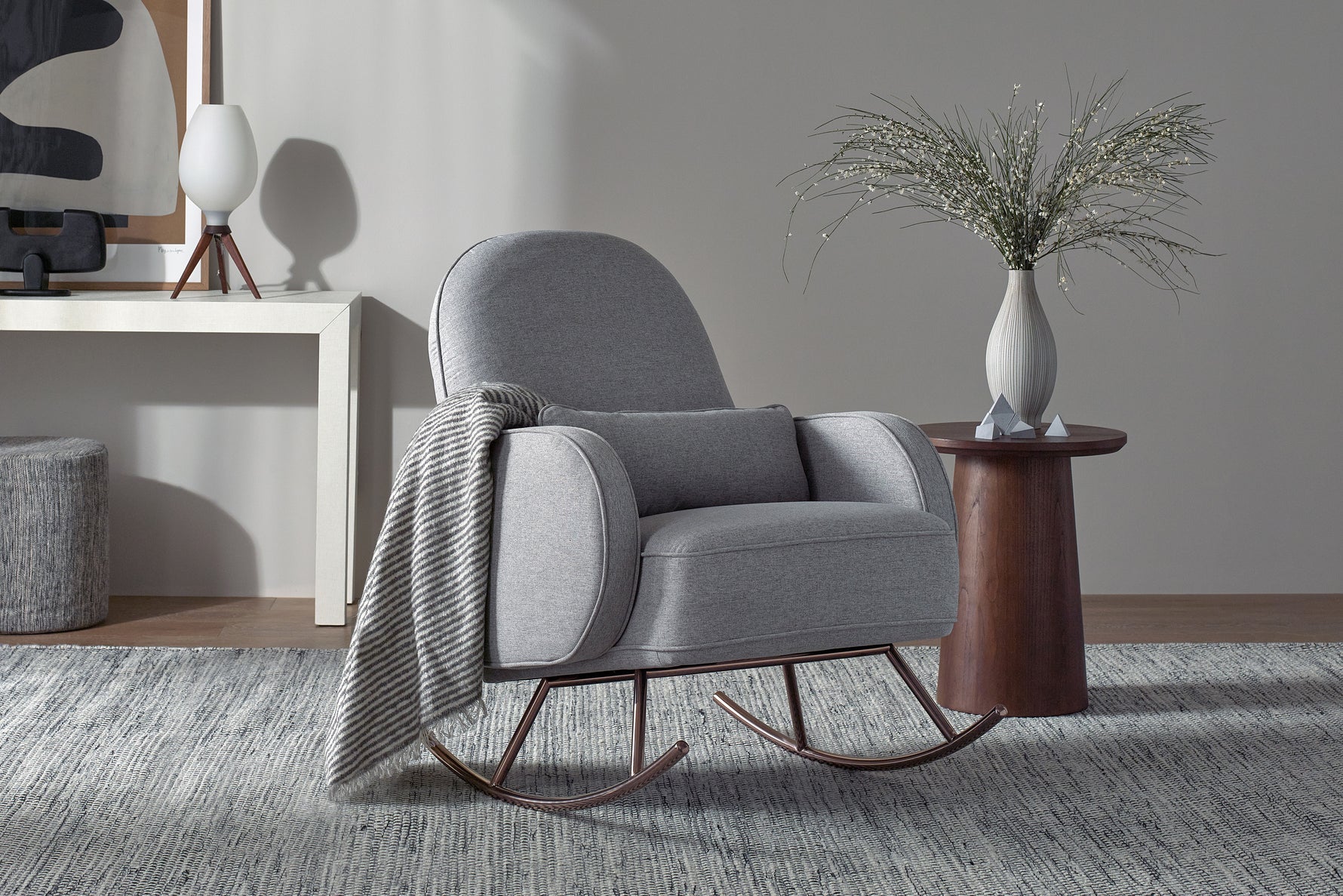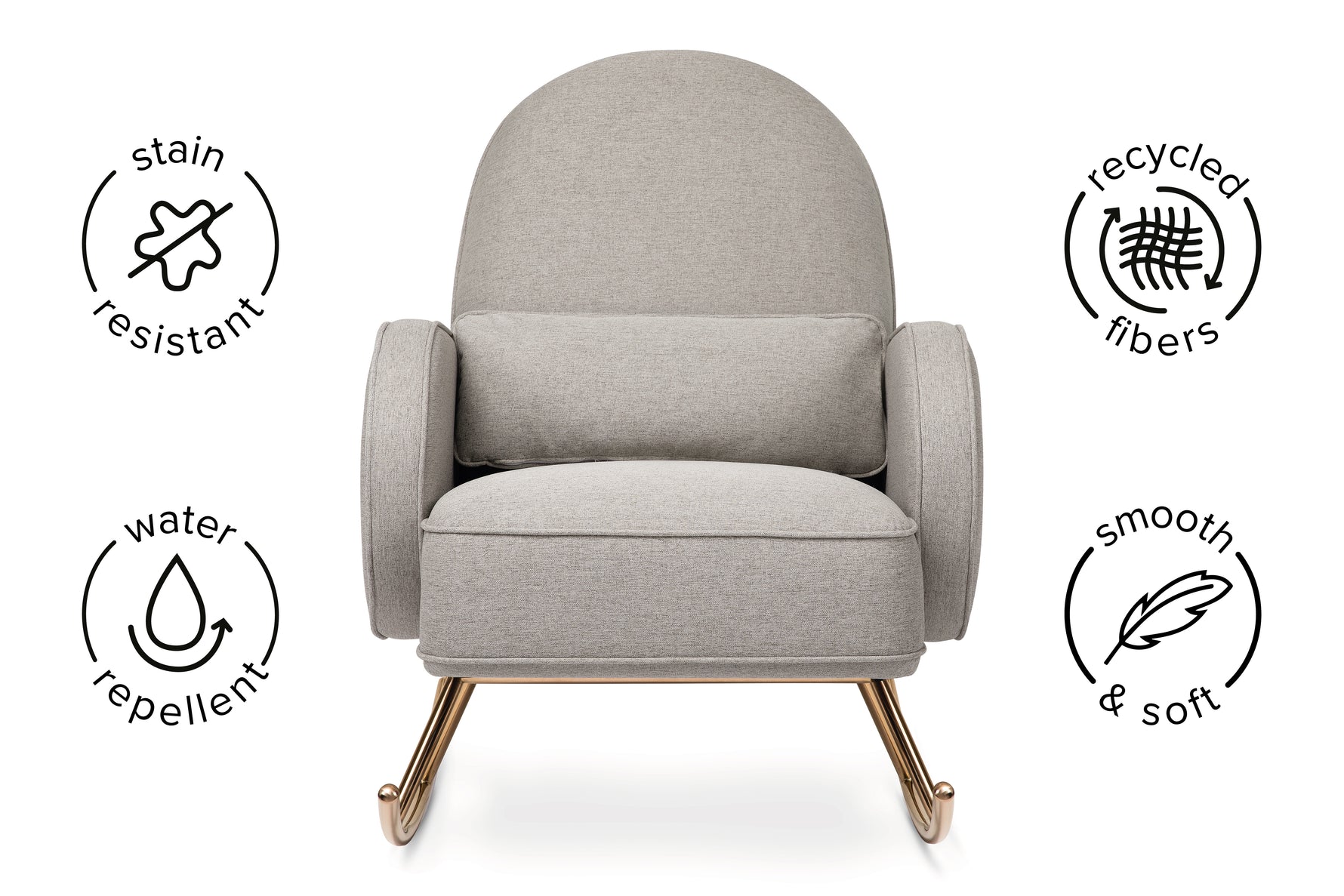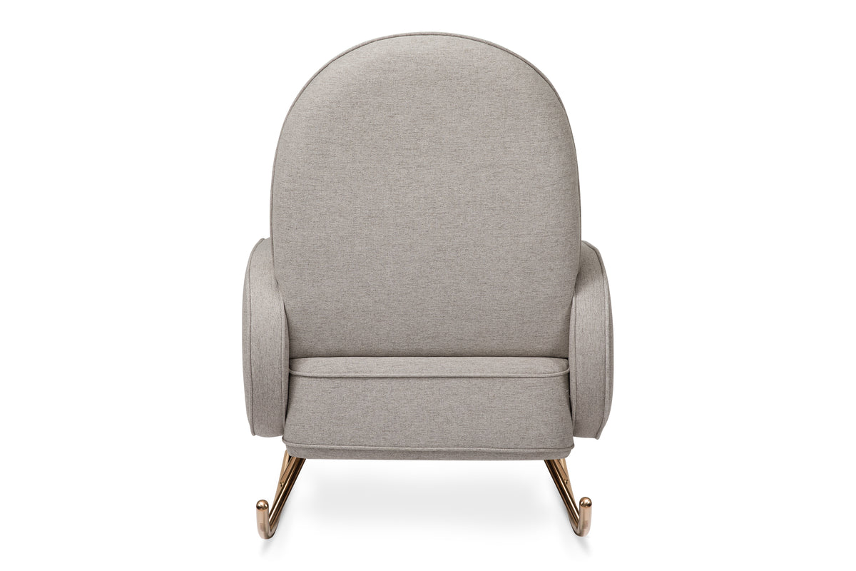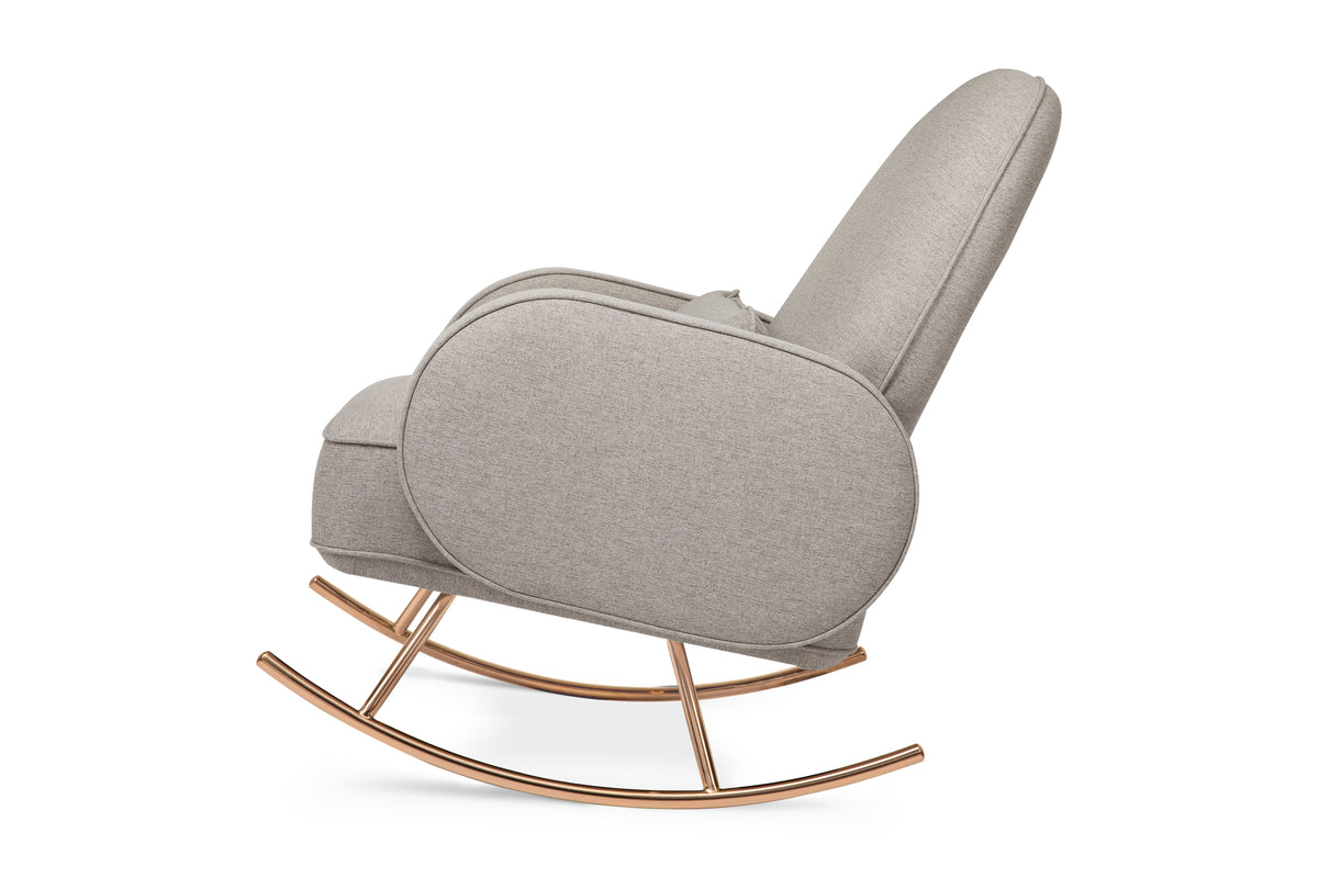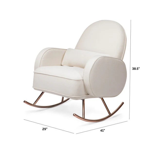 • MODERN LUXE: The compass rocker is a luxurious take on the nursery rocker with a rounded voluminous back and armrests that sit upon elegant rose gold plated stainless steel legs