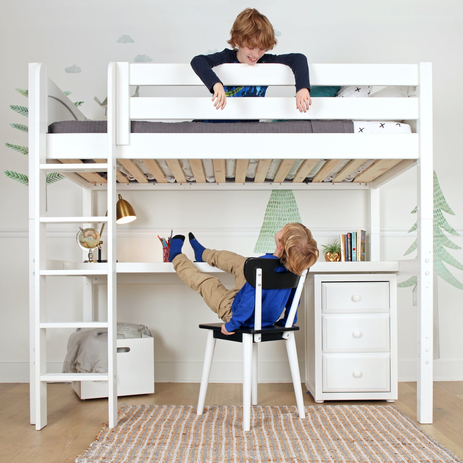 Create your own study nook with our Full Mid Loft with Straight Ladder and 4 Drawer Dresser and 2 Drawer Student Desk and 52.5” Mid Bookcase. Designed for sleep, storage, and studying, this loft bed is the perfect solution for small spaces. This loft bed features a bookcase with 4 open shelves and a dresser with 4 roomy drawers to display and store all your everyday items. Perfect for schoolwork and projects, the compact pull out desk features 2 drawers for all your study essentials. The straight ladder has wide, grooved steps for easy climbing and rests flush against the bed to save space. Part of Maxtrix’s ForeverBuilt line, this loft bed is endlessly reconfigurable. All underbed pieces are freestanding and can easily be removed to use separately. Convert into a taller loft bed, bunk bed, or full size bed as kids and families grow.