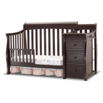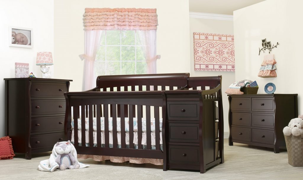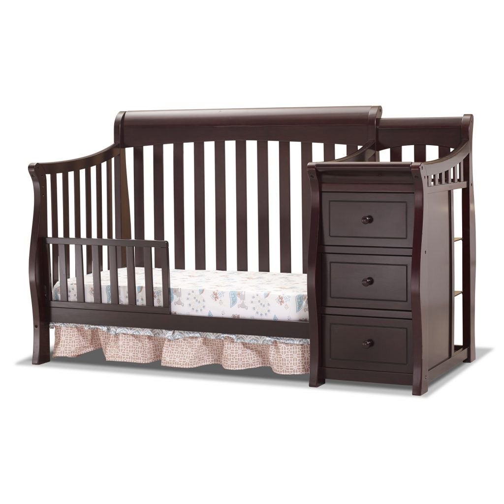 The Princeton Elite Crib and Changer offers a unique crib design with attached changer for an attractive, convenient addition to any nursery. As your child grows older, the changer easily detaches and the cribs convert to toddler bed with the purchase of the Toddler Rail, to a day bed and finally to a full size bed with the purchase of the Full Size Rails, Sold separately. The Princeton Elite Crib and Changer is made from Pine wood and features smooth, hand rubbed surfaces and corners.